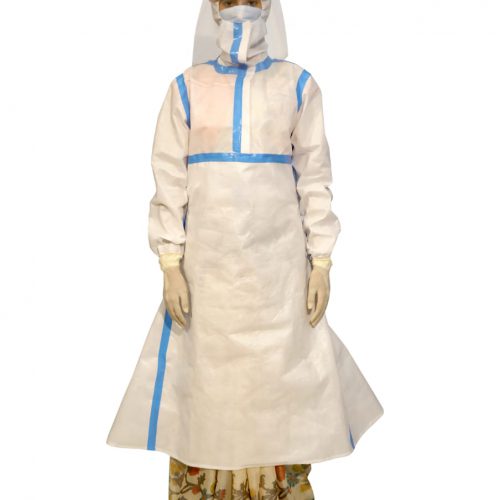 Seam Tap Covered Government Approved SITRA Certified PPE Kit. This PPE kit is Comfortable & Protective over Sarees & Salwar Suits specially designed for Indian Medical Staff.